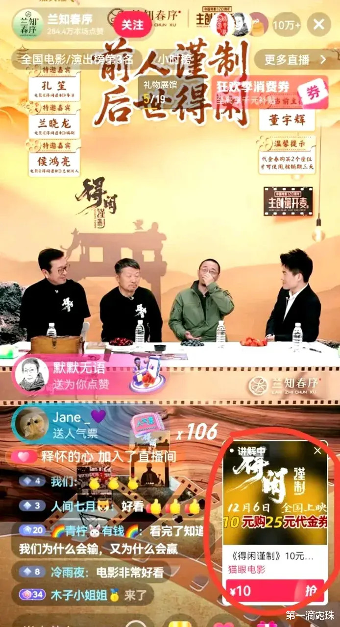 直播间推出的10元购25元代金券福利,3天核销期内6万张全部售罄,直接带动了周末的观影潮,不得不说这种“逆向宣发”策略太成功了。